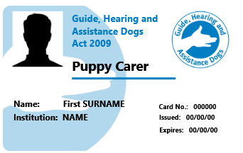 - The Handler is issued with a proof of identity document issued by an Approved Training Organisation, showing that the dog has attained the appropriate level of training and/or passed the PAT.