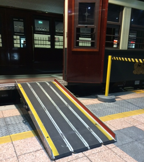 If you experience difficulties navigating steep steps, we recommend you consider travelling in the accessible carriage.