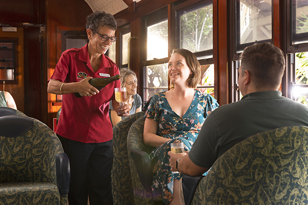 Page Content Heritage Class Travel in the Kuranda Scenic Railway original timber carriages, which are over 100 years old and experience the incredible scenery as the train winds its way through World Heritage-listed rainforest. See fares and more information.Book Now Gold ClassEnjoy the comfort of Gold Class in carriages adorned in handcrafted Victorian inspired décor, club loungestyle seating and personal onboard service. See fares and more information. Book Now Locals Fare Local residents of Cairns and surrounding areas receive 20%* off Gold Class and Heritage Class seats. Take a rail adventure with us! *Conditions apply. See fares and more information.Book Now Royale ClassRoyale class is suitable for large groups with a mid-range budget (minimum 15 customers). Your group will travel in our refurbished Heritage carriage with refreshment service enroute served by an exclusive hostess. See fares and more information.Book Now Images courtesy of Tourism and Events Queensland.